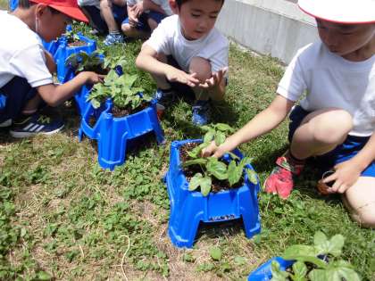 あさがおの間引きをしたよ【5月25日(金)の1年生】 公開日 2018/05/25 更新日 2018/05/25 1年 あさがおの本葉が1,2まいでてきました。2本残して間引きをしました。その後、本場の形や手ざわり、枚数などを観察しました。