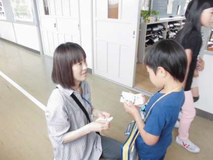 お兄さん・お姉さんの教室を探検したよ その4【5月28日(月)の1年生】 公開日 2018/05/28 更新日 2018/05/28 1年 先生たちと名刺の交換もしました。先生と上手に自己紹介ができました。