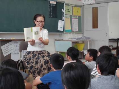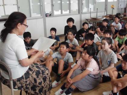 読み聞かせがありました。今回は、2つのお話を聞かせていただきました。真剣に聞いていました。