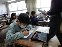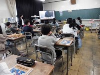 5年生はイタリアの祭りについてお話を聞きました。オレンジを投げ合う祭りや人間チェスなど、おもしろい祭りがたくさんありました。後半は伝言ゲームを行いました。