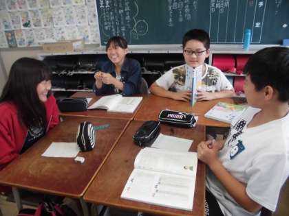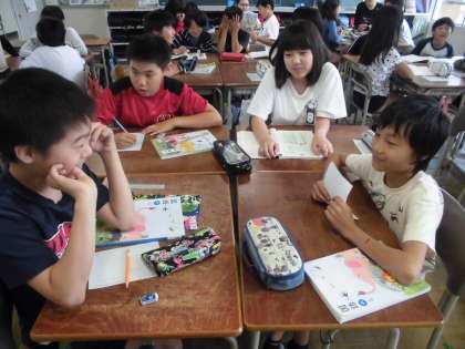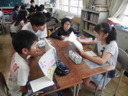 国語の時間です。肯定派、否定派、司会、判定役と4つの役割に分かれて討論をすすめました。どの討論も盛り上がっていました。