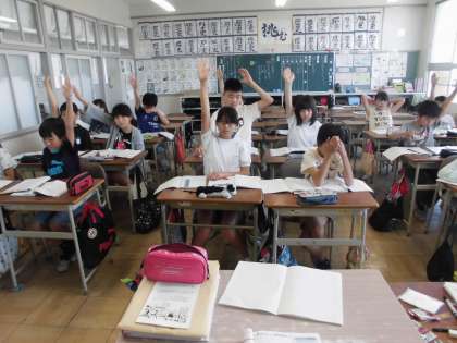 たくさんの子が手を挙げて頑張っています。