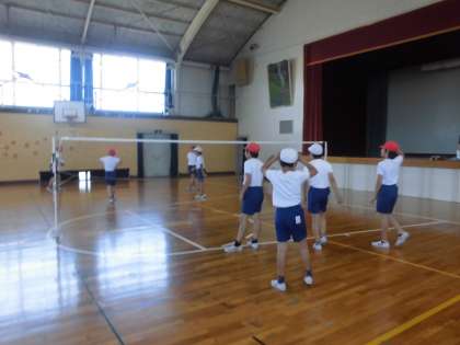 ネットを張って簡単なルールの練習も行い、試合に向けての準備を進めました!