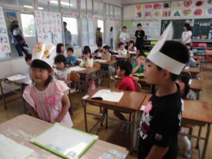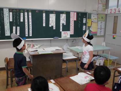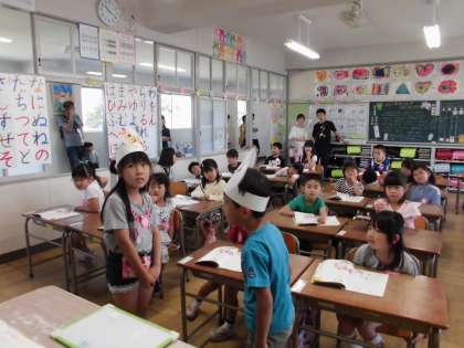 道徳の授業【6月2日(土)の1年生】 公開日 2018/06/02 更新日 2018/06/20 人権・いじめ対策関連 気もちがよくなるあいさつや言い方について考えました。ミツバチやレンゲさんになってあいさつやおしゃべりをしました。元気よく相手の顔を見てあいさつしたり、ていねいにやさしくお礼を言ったりすると、うれしくなることが分かりました。