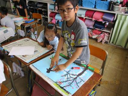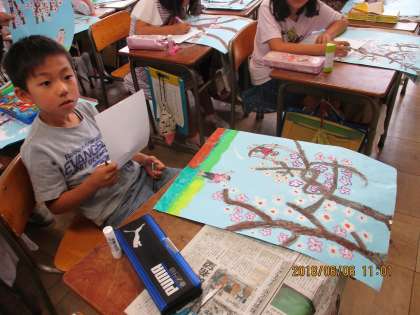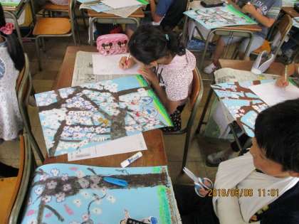 写生大会の絵が、今日完成しました。桜の花びら、木の力強さ、一人一人の絵に工夫があります。