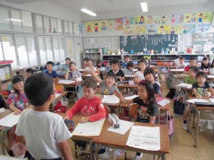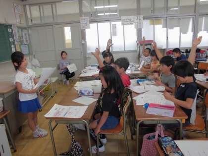 生活科の授業【6月6日(水)の2年生】 公開日 2018/06/06 更新日 2018/06/06 2年 町たんけんに行って学んだことを新聞にまとめました。今日は、一人ずつ発表をしました。自分で作ったクイズも発表をして、みんなに答えてもらいました。