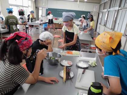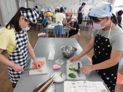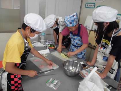 家庭科の授業では彩炒めを作りました!