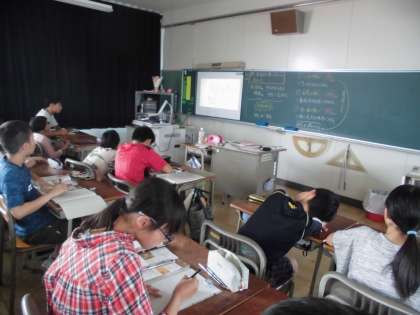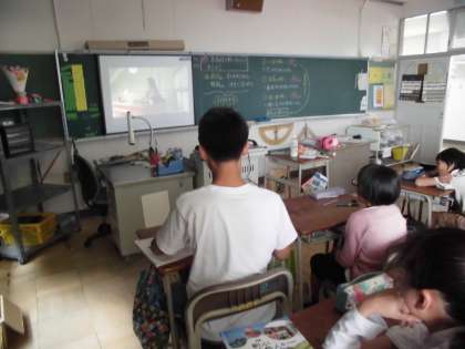 社会の時間です。社会では映像を見ながら歴史について勉強しています。