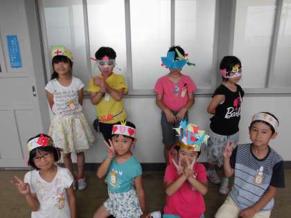 図工の作品【6月11日(月)の2年生】 公開日 2018/06/11 更新日 2018/06/11 2年 図工の学習で、自分が変身したい姿をイメージし、輪に色々な材料を付けたり、書いたりして表現しました。