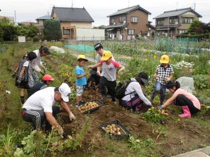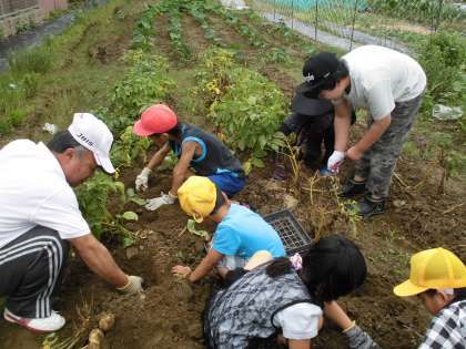 ジャガイモの収穫【6月11日(月)のたんぽぽ】 公開日 2018/06/11 更新日 2018/06/11 たんぽぽ 地域の方の畑でジャガイモの収穫体験をさせていただきました。 土を掘ると・・・出てくる出てくる!たくさんのジャカイモを見つけることができました。ミミズや昆虫の幼虫やさなぎも見つけて、楽しい収穫体験となりました。