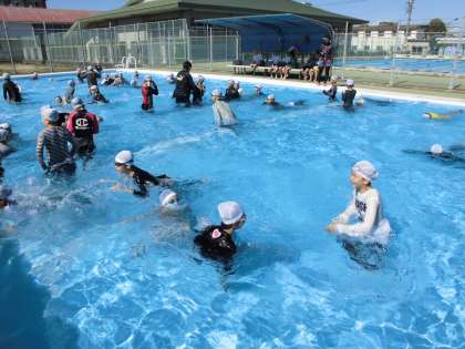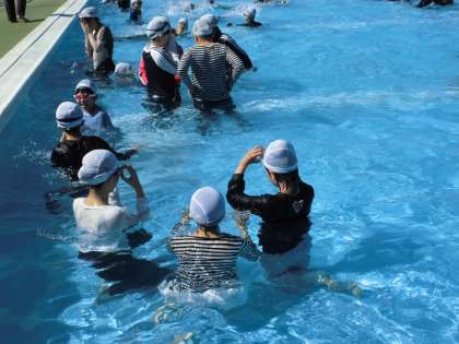服を着たまま浮くのは、なかなか難しいです。