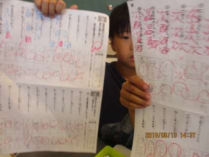 テスト勉強【6月13日(水)の3年生】 公開日 2018/06/13 更新日 2018/06/13 3年 漢字テストが明日に近づいています。声に出して書く、待ち型漢字を何度も書く、など工夫して、プリントに勉強をがんばりました。