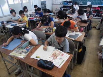 図工の時間には、版画づくりのための下絵を書き進めました!
