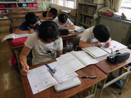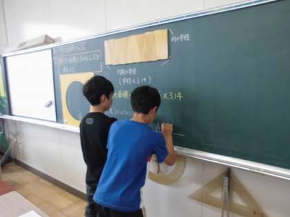 算数の授業の様子です。今日は円の面積の公式を導き出しました。