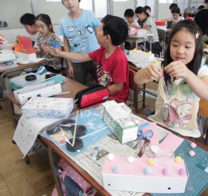 図工で「ドリームカー」の製作を始めました。どんな作品が出来上がるか楽しみです。