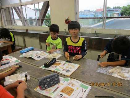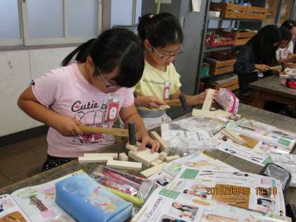 図工の時間【6月18日(月)の3年生】 公開日 2018/06/18 更新日 2018/06/18 3年 金づちを使って釘を木に打つ練習をしました。 まっすぐ釘が気に入るよう、持ち方や打つ力を調節しながらできました。
