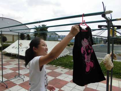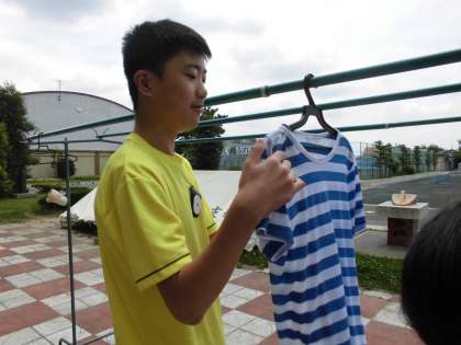 すすぎをしっかりしたら、しわを伸ばして干しました。
