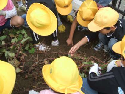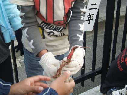 さつまいもを掘りました!part1 公開日 2009/11/09 更新日 2009/11/09 2年 11月9日、2年生待望の「さつまいも掘り」をしました。先週は欠席者が多く、今週に延期していたため、みんなやる気満々で掘り始めました。すぐに見つける子、なかなかみつからなくて困っている子など、さまざまでした。思ったより大きなおいもで、皆大喜びでした。このおいもは、1年生にも調理して振る舞う予定です。
