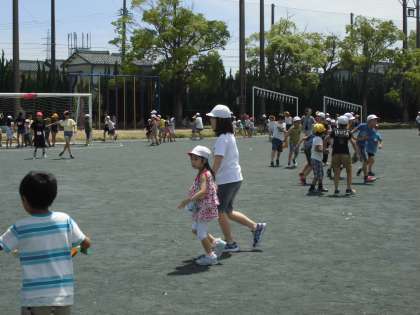 ふれあいタイム 【6月22日(金)の1年生】 公開日 2018/06/23 更新日 2018/06/27 人権・いじめ対策関連 今日は、ふれあいタイムで、全校児童で逃走中を行いました。ペアの6年生のお兄さん、お姉さんたちと手をつないで走りました。どの子も「楽しかった!」と笑顔で教室に戻ってきました。またペアの子と遊びたいね。