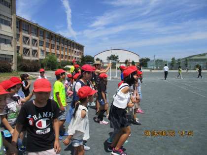全校遊びとして「全校逃走中」を行いました。ケガがないように、ペア学年へ思いやりをもてるように、ルールをよく考えました。