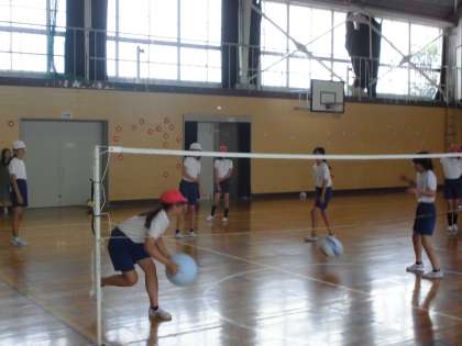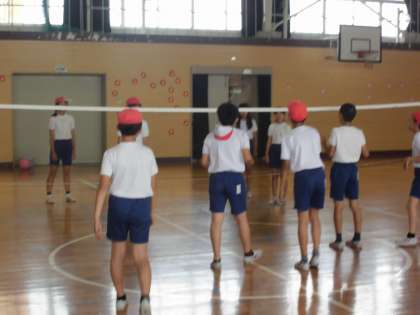 本日の体育の授業ではソフトバレーボールで試合を行いました!