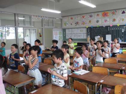 今日の英語活動では、アルファベットの勉強や乗り物のことばの勉強をしました。アルファベットの歌を歌ったり、何の乗り物か当てるジェスチャーゲームをしたり、楽しく学びました。