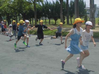 6月のふれあいタイムで(6月22日実施)は、全校児童で逃走中を行いました。ペア学年のお兄さん、お姉さんたちと手をつないで走りました。どの子も「楽しかった!」と笑顔でした。子どもたちは、「またやりたい。」「ペアの子と遊んで楽しかった。」「ラッキータイムがよかった。」という声が聞かれました。