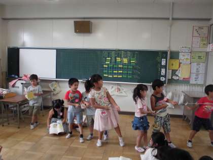 おおきなかぶの発表会【7月19日(木)の1年生】 公開日 2018/07/19 更新日 2018/07/19 1年 ナレーター、おじいさん、おばあさん、まご、いぬ、ねこ、ねずみ役になりました。3つのグループに分かれて発表しました。