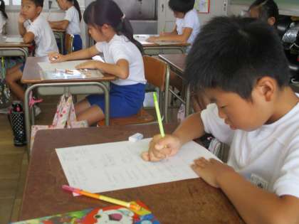 今日は算数のテストをしました。