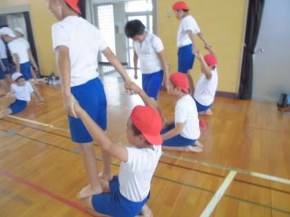 今日は、一人技と二人技の練習をしました。 みんな記憶力が良くて、すぐにできていました。
