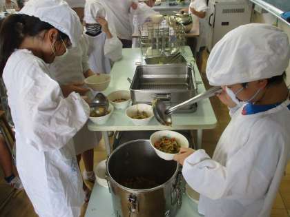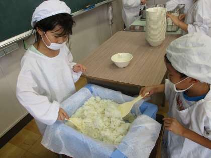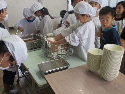 2回目の給食でした。みんなで力を合わせて、テキパキと配膳ができるようになってきました。