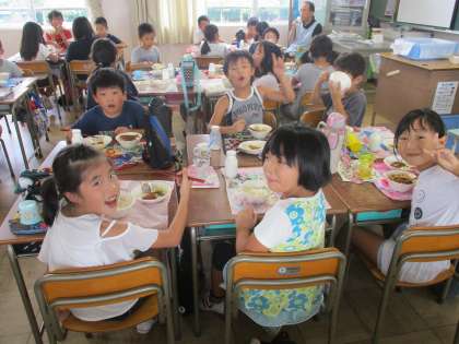 給食の時間には、友だちと仲良く楽しく給食を食べています。