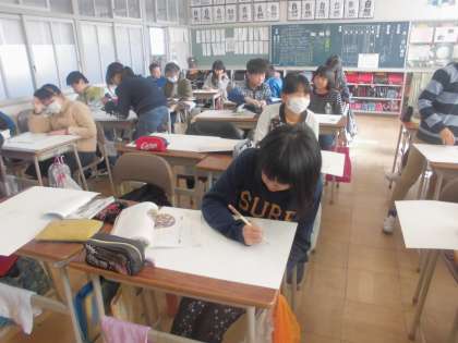 読書感想画を描いています【12月13日(木)の5年生】 公開日 2018/12/13 更新日 2018/12/13 5年 図工で読書感想画を描いています。 自分のお気に入りのシーンを絵にイメージして描いています。