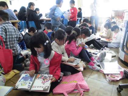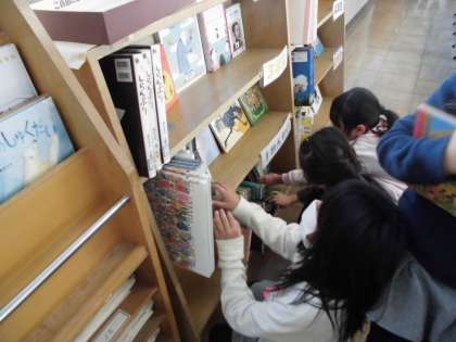 図書館へ行き、冬休み読書用の本を2冊かりました。そのあと、1年生おすすめの本を読みました。