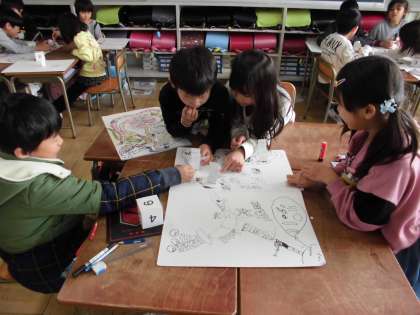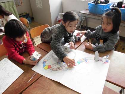 すごろくのマスの内容を工夫してオリジナルのすごろくが完成しました。