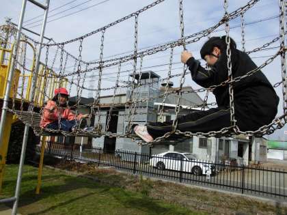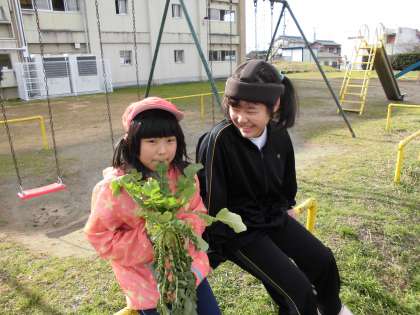 活動の様子【12月19日(水)のたんぽぽ】 公開日 2018/12/19 更新日 2018/12/19 たんぽぽ 学年園のダイコンを収穫した後、遊具で遊びました。 遊び方を工夫して、楽しく汗をかきました。