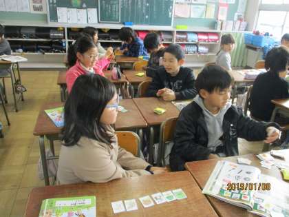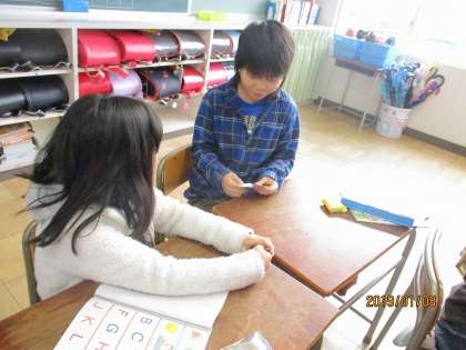 What's this ? と英語で友達にたずね、ペアで答える活動をしました。