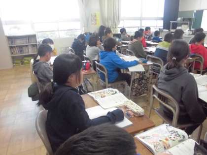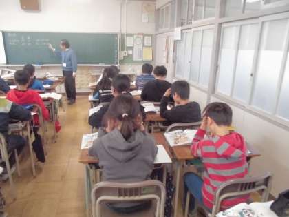 算数の時間【1月10日(木)の5年生】 公開日 2019/01/11 更新日 2019/01/11 5年 新しい単元の「割合」を行いました。 問題文を読み取ることが難しく、苦戦していましたが 一生懸命取り組むことができました。