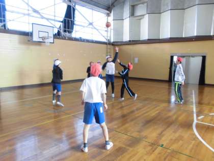 バスケの試合を楽しみました。みんなでやると本当に楽しくて盛り上がります!!