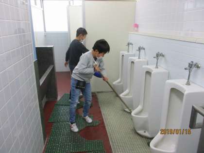 がんばって掃除をしています。