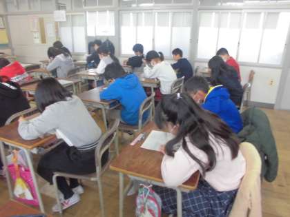 理科のテスト【1月15日(火)の5年生】 公開日 2019/01/15 更新日 2019/01/15 5年 理科のテストの様子です。 電磁石の単元で、 自主学習ノートには一生懸命に勉強した様子がうかがえました。