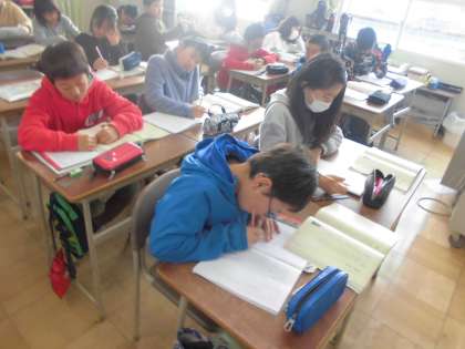 論語と漢詩【1月15日(火)の5年生】 公開日 2019/01/15 更新日 2019/01/15 5年 国語で「論語と漢詩」について読んで学習しました。 普段目にしたり、耳に入ってきたりしない言葉なので慣れない様子でしたが 楽しんで読み合うことができました。