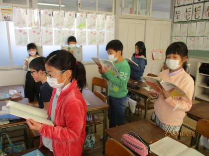 国語の詩の音読をがんばっています。