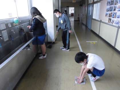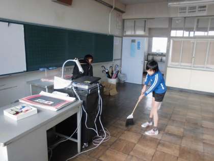 みんなが一生懸命掃除をしています。