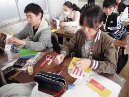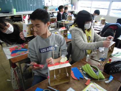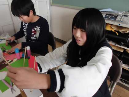 図工の時間です。真剣に作品作りに取り組んでいます。