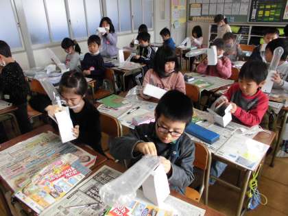 箱から飛び出す袋を使って、どんなものを作るか考えました。