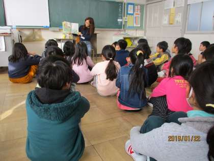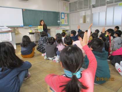 集中して読み聞かせを聞いていました。