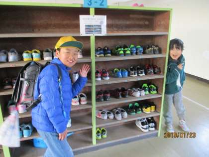 下駄箱では、靴をそろえて気持ちの良い朝のスタートを迎えています。