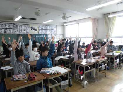 授業中の様子ですが、たくさんの子が挙手をしてやる気いっぱいです。