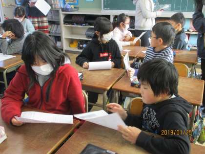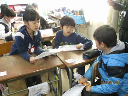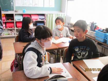 ペアになって、物語の主人公の気持ちについて話し合いました。